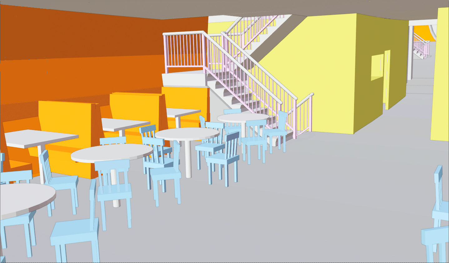 Illustration 4: Cafeteria Module with stairs to staterooms.